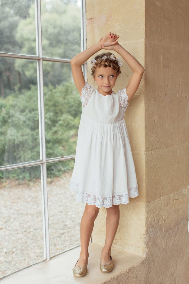 Entièrement doublée de voile de coton, sa forme fluide et légèrement ample, sa matière en coton agréable et respirante plairont à toutes les petites filles ou adolescentes invitées à un mariage ou une grande fête. Originale et très stylée, elle possède une encolure dos en V, refermée par une boutonnière.